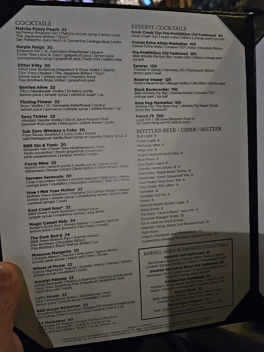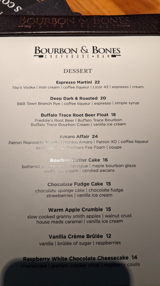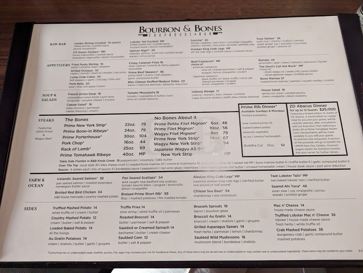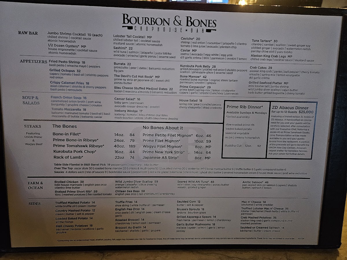 Bourbon & Bones Chophouse Bar Menu (2025 Update)