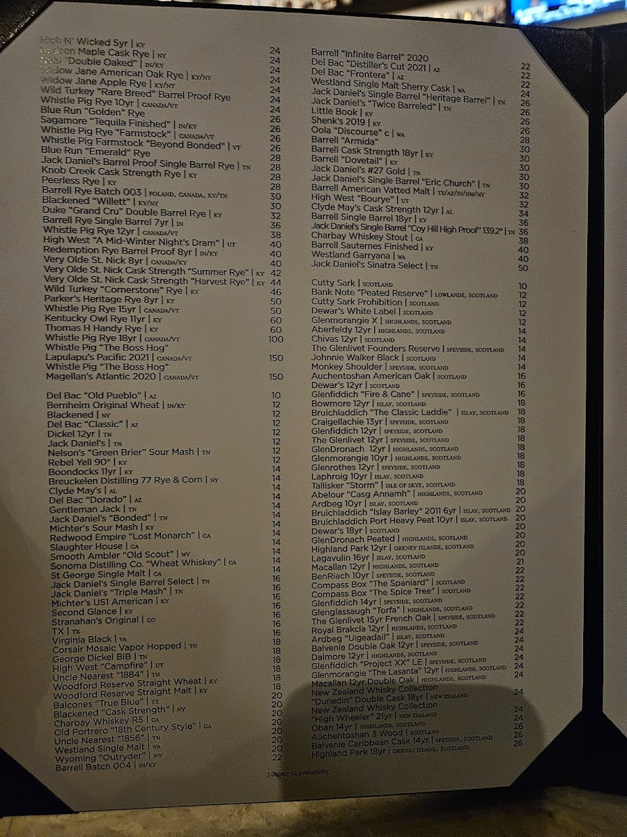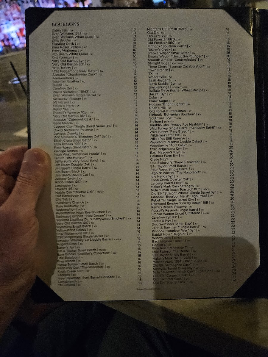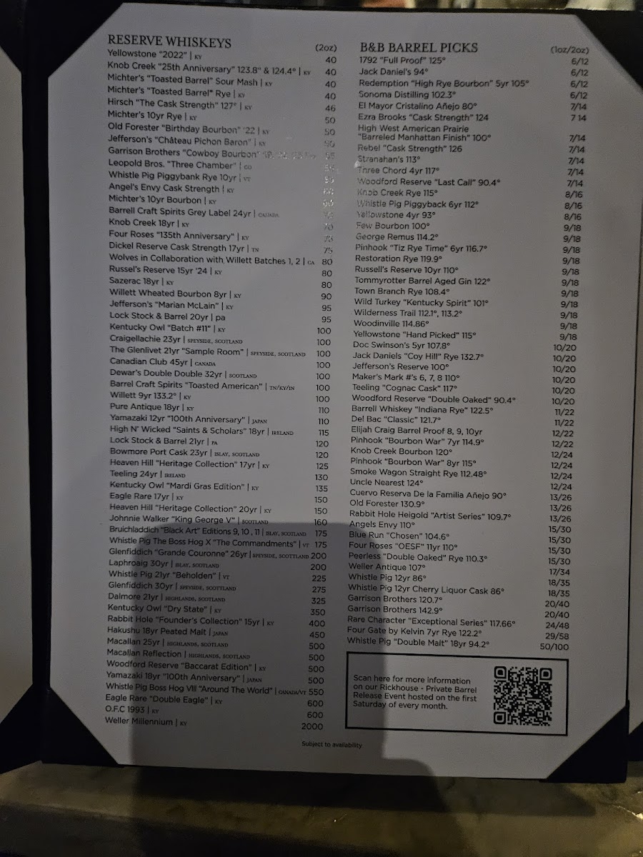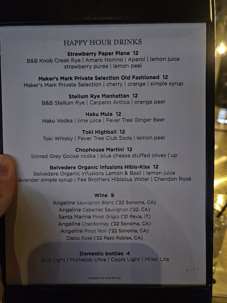 Bourbon & Bones Chophouse Bar Menu (2025 Update)